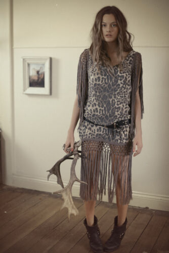 This fringed dress from Spell Designs is crafted from rayon in a brown leopard colour and features an eye-catching fringe length, making it ideal for a short, fashionable look. It should only be hand-washed to preserve its condition.