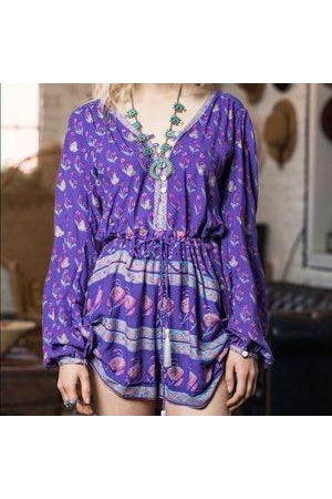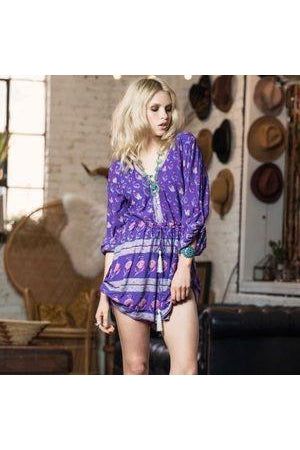 This famous spell play suit has a draw-string waist, perfect with or without a belt, cropped 3/4 length sleeves, perfect for beachy evenings and the shorts feature little buttons up the thighs to hitch the sides up.