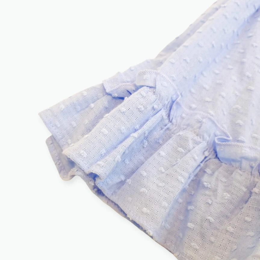 Chloe Dress is made out of 100% cotton and has flexible adjustable shoulder straps which last for years. The dress features dotted patterns with cotton balls that are so comfy which is both classic and charming and would make your toddler look even cuter.