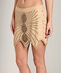 A gorgeous mini skirt with a totally vintage vibe. Hand-beaded brass embellishments. Scalloped hem. Wear higher on the hips for a micro mini or pull lower for a more modest length. 100% Rayon. Elasticized waist with invisible side zipper closure. Beaded and sequined front detail.