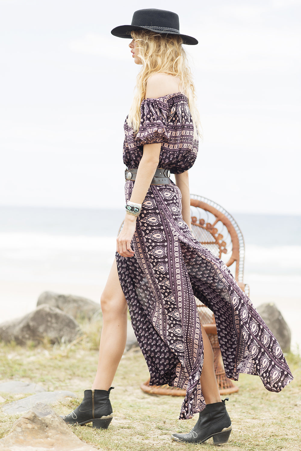 The super flattering maxi skirt is back! This time the print is a warm pepper scattering of daisies and gypsy detail, the ultimate ‘western meets boho’. It’s super vintage-esque but so, so wearable! Spell's best-selling, super flattering maxi skirt. With two leg-loving splits up the sides, it's a classic Spell WOW piece.