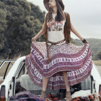 This perfect vintage skirt in Berry, is the first in the iconic castaway style and Spell's first ever signature print, Gypsy Love.  A collectors must have, from the original drop.