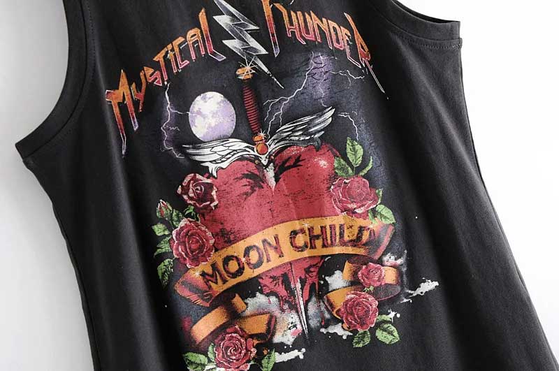 Mystical Thunder 'inspired" Tank with its electrifying hand-drawn print on the front, has a classic rock vibe with a dramatic, feminine twist.