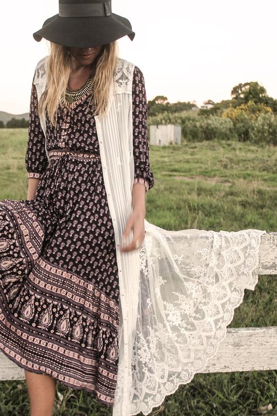 This stunning vintage-style duster in a classic Spell Duster style. Made in the most beautiful, delicately detailed lace, this sleeveless duster looks stunning as textured layering piece and doubles perfectly as a sheer maxi dress.
