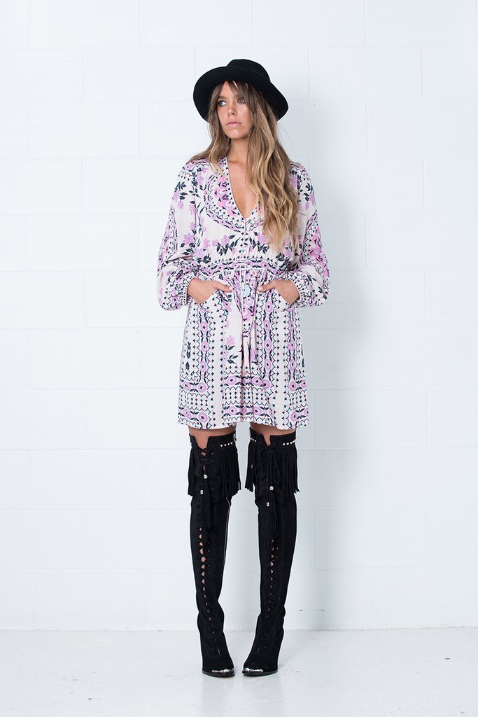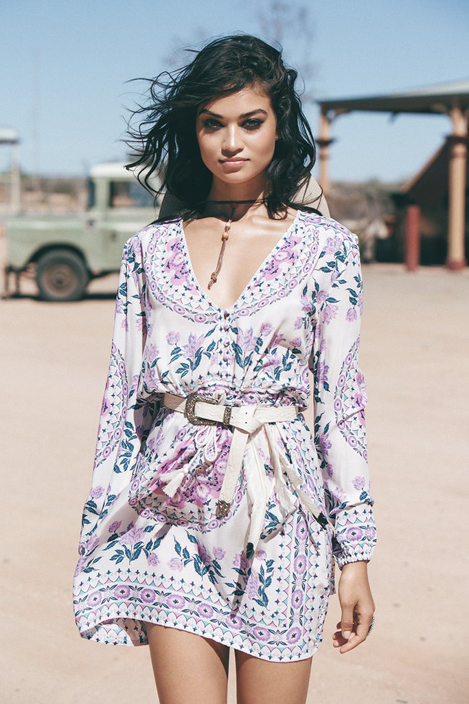 A gorgeous Spell playdress in the romantic Pandora print in soft primrose tones. With long, billowed sleeves and flattering draw string waist, it's easily belted and the perfect piece all year long.