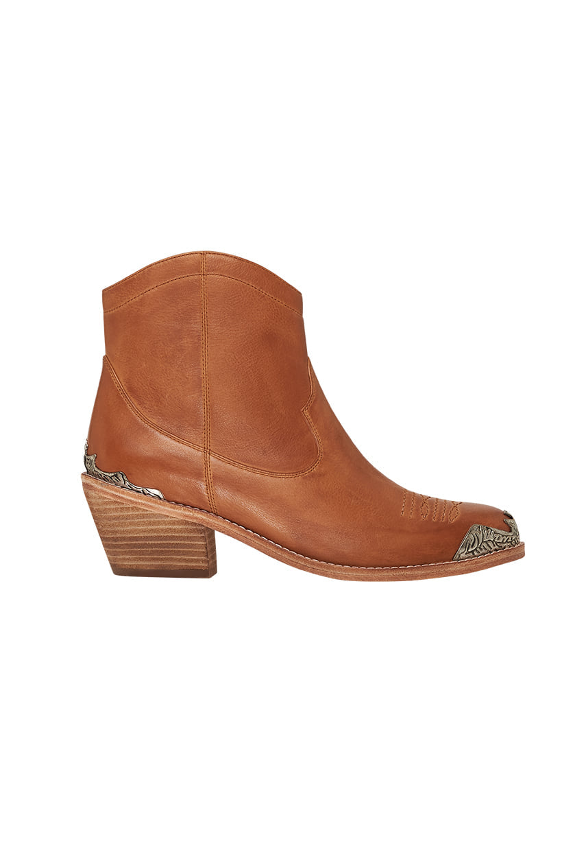 These vintage Western inspired boots in brown leather feature etched metal heel & toe caps - these beauties are the finishing touch for your cowgirl meets boho look.