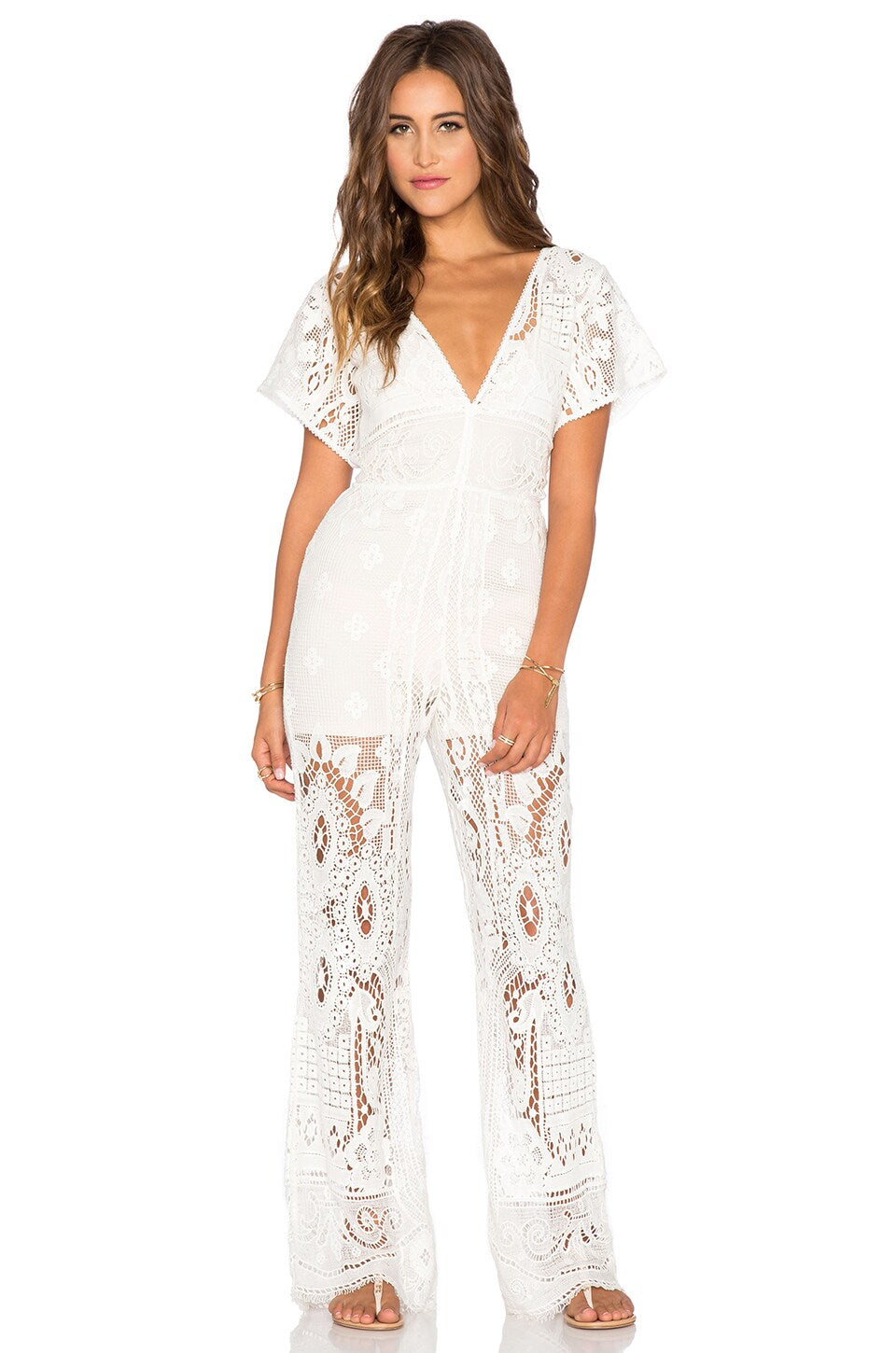 The custom milled Woodstock Lace ’ in this gorgeous jumpsuit. With a draw-string waist; it's perfect with or without a belt. Rock this one festival-side with lace ups or dirty cowgirl boots.